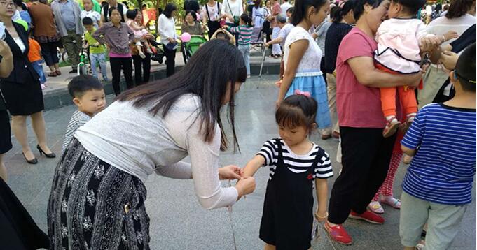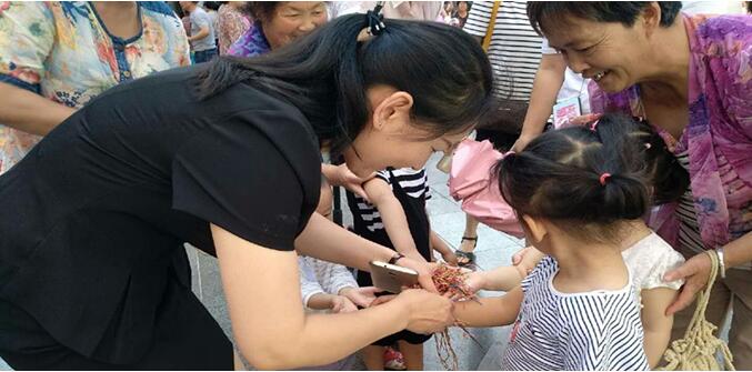 為小朋友帶上五顏色六色的花繩